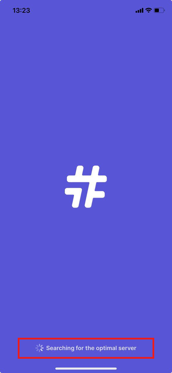 If you see a screen saying “Searching for the optimal server” when launching the HASH7 app, it means the system is selecting the best server based on your current location. Once the process is complete, the app will open automatically.