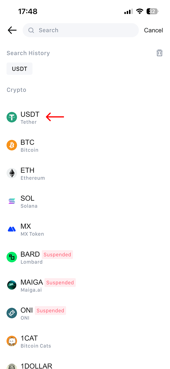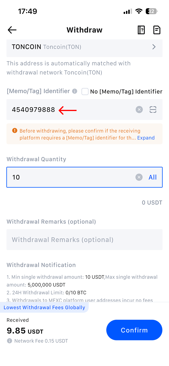 7. Open the MEXC app and paste the copied MEMO from the HASH7 app into the *"Memo/Tag"* field.\