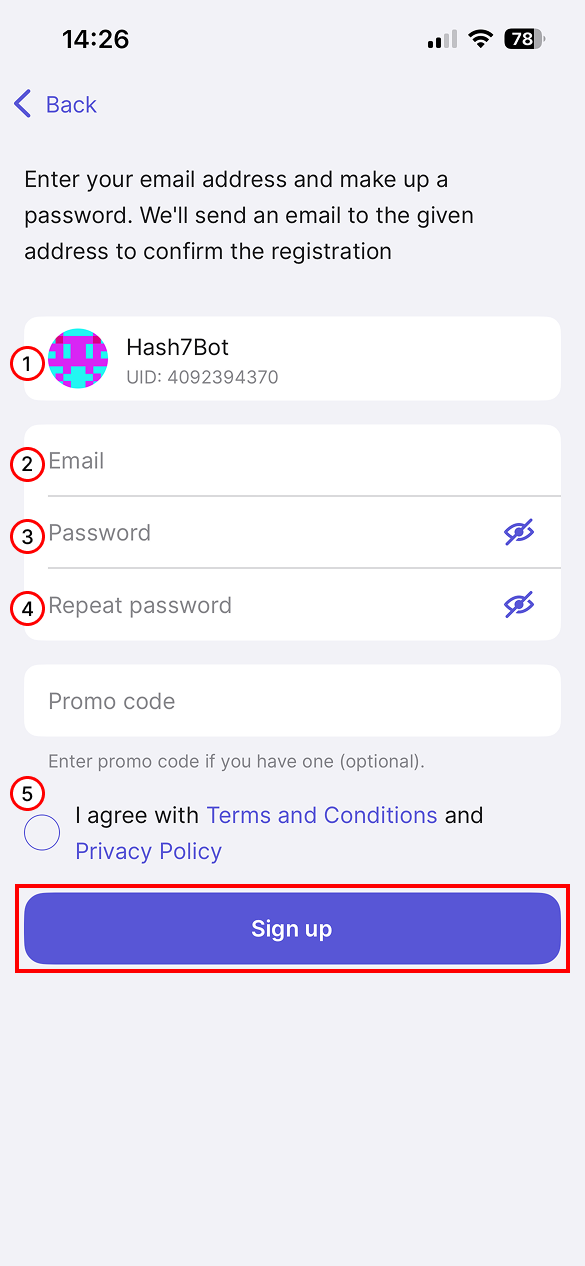 1. The account of the user who invited you is displayed here. Verify the details of your inviter—make sure the account of your referring partner is correct.