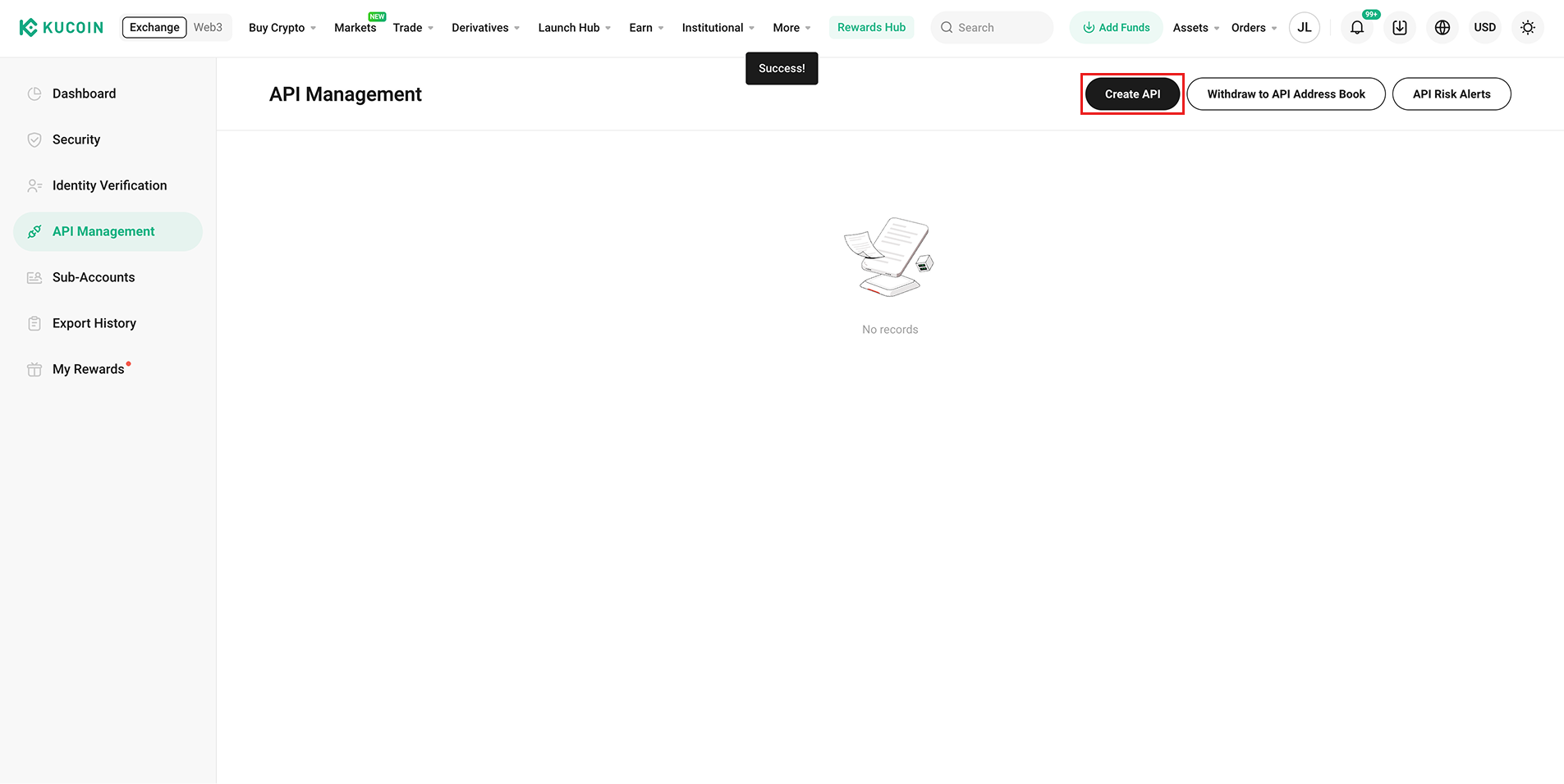 After completing the security verification, your API keys will be successfully created. Then copy your API Key (Key) and API Secret (Secret) to a secure location. Scroll down and click "Confirm" to finalize and save the keys.&#x20;