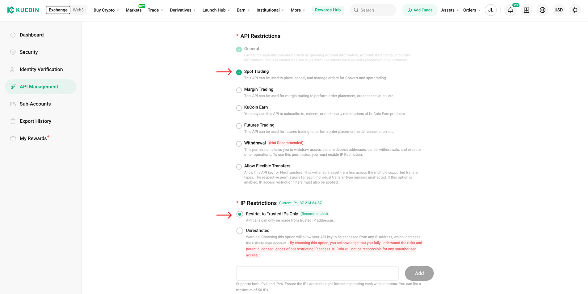 In the "API Restrictions" section, select the "Spot Trading" option.
