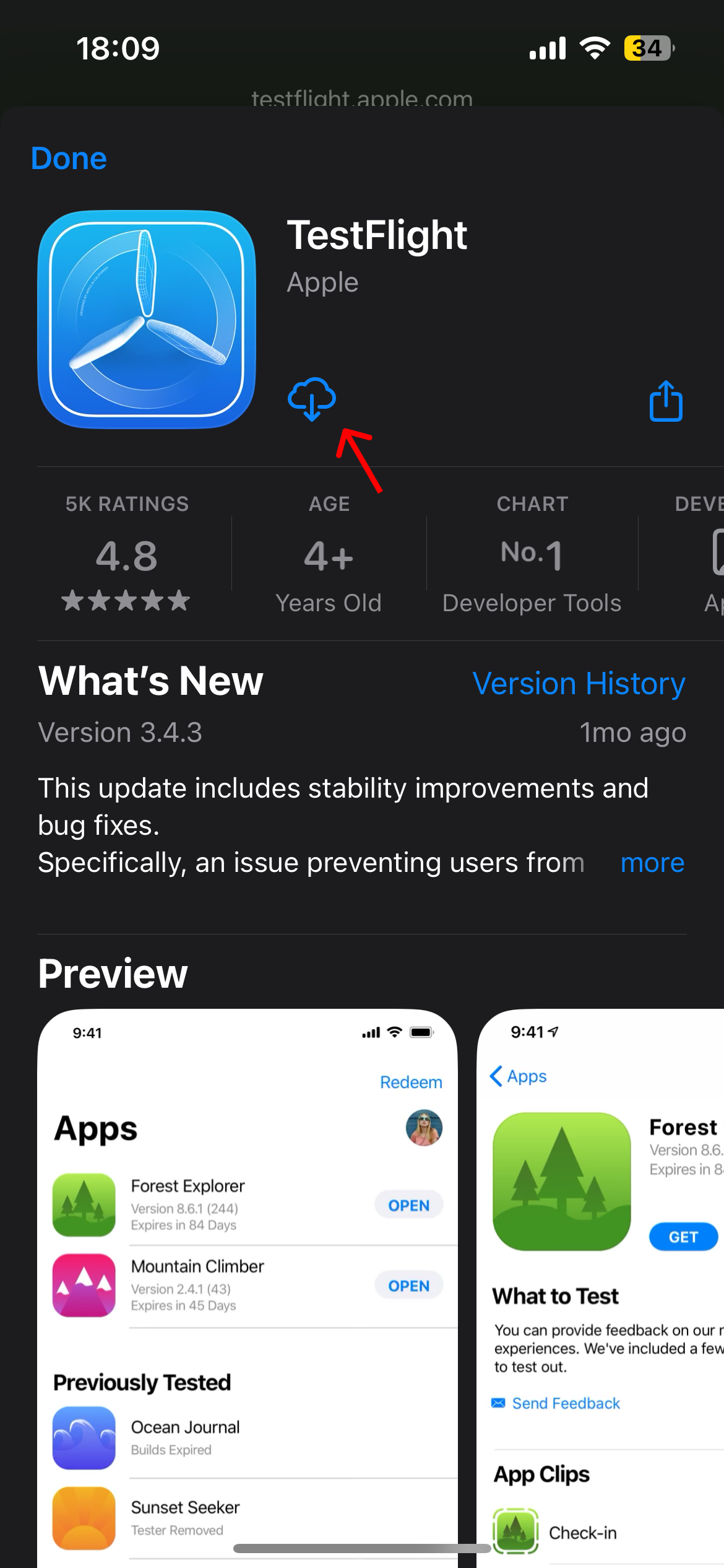 You will be taken to the App Store. Here you need to install the TestFlight application.