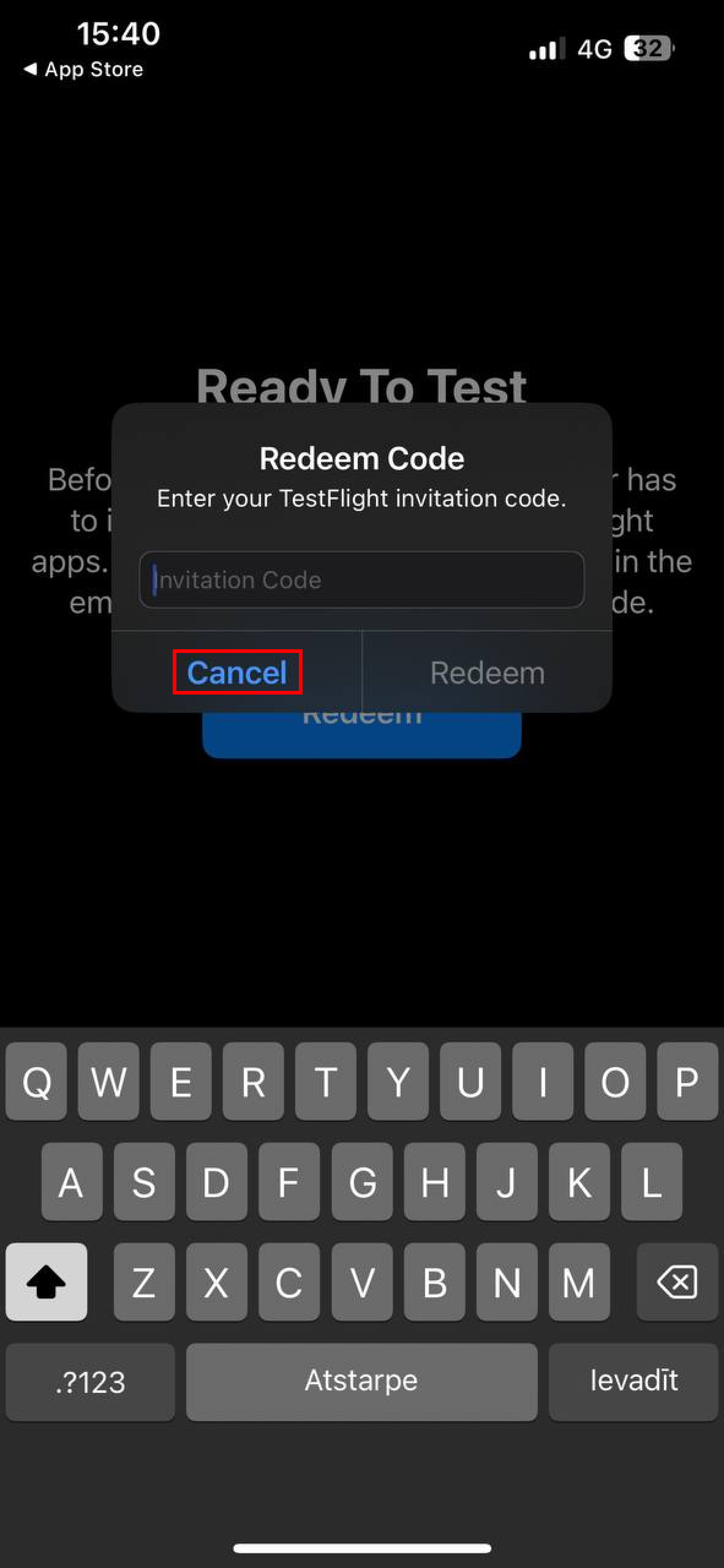 &#x20;                                <mark style="color:red;">**It is not needed to enter any codes in the TestFlight app.**</mark>