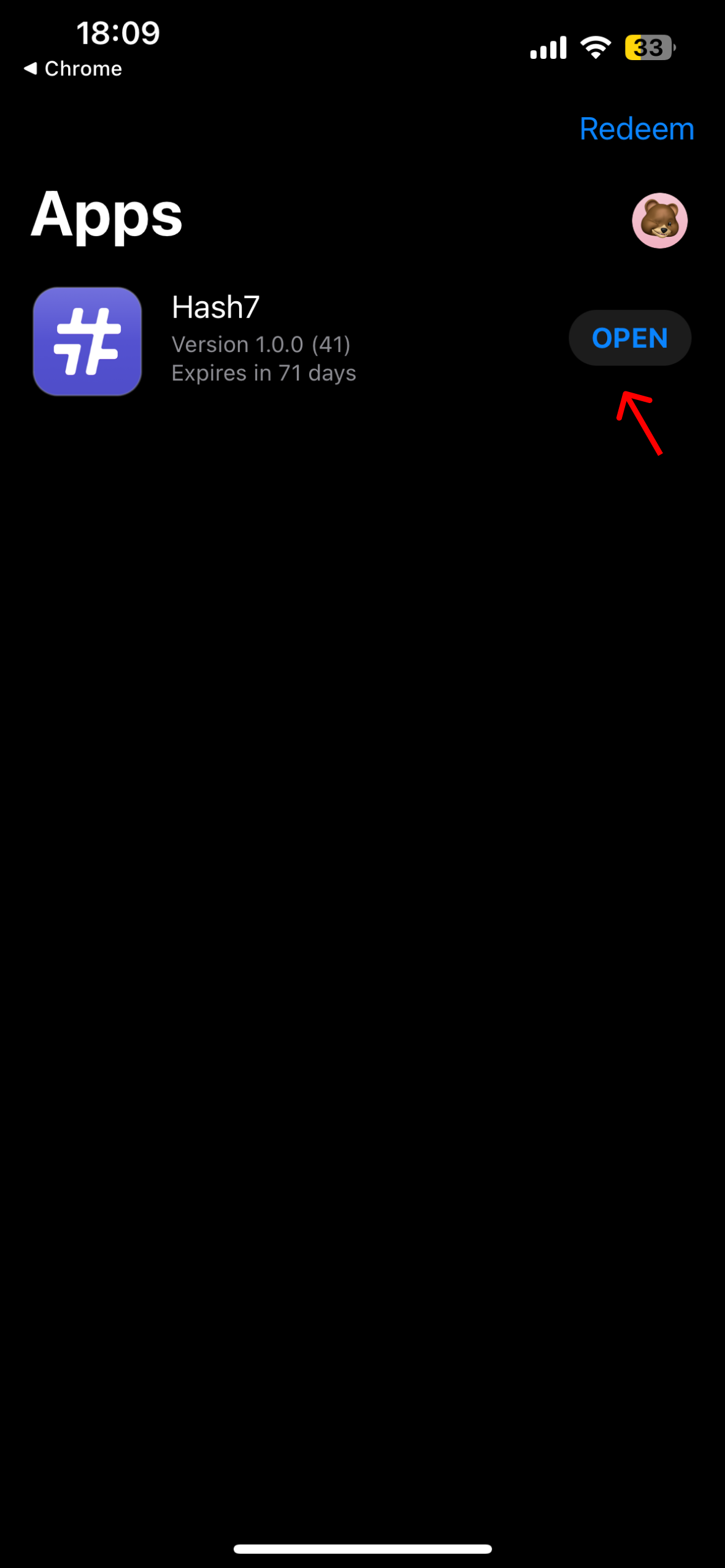 Next, the Hash7 application will open inside the TestFlight application. At this point, you need to click on the "Open" button. After that, the Hash7 app will automatically be displayed on the home screen of your device.
