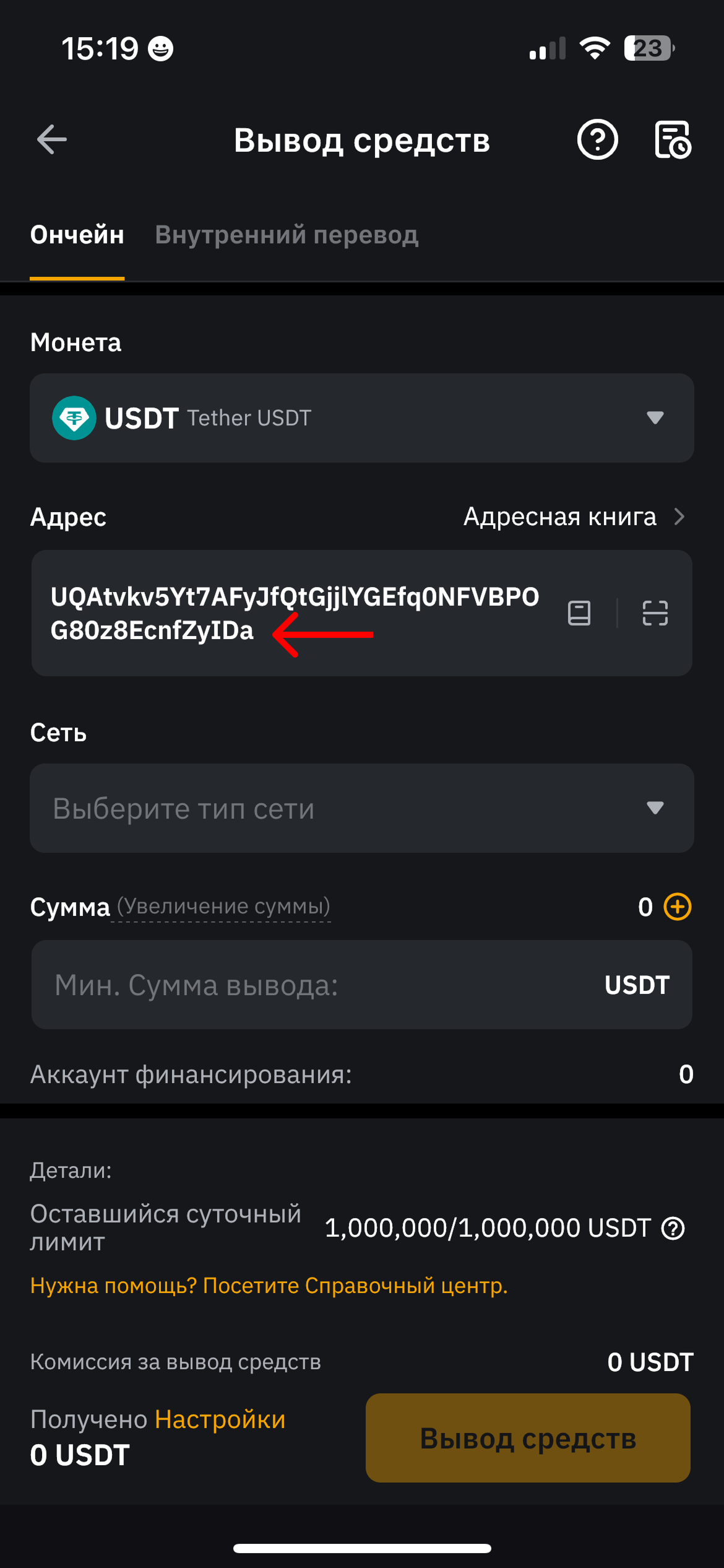 <mark style="color:red;">**Особое внимание уделите сети, так как если перевод будет осуществлен не через сеть TON, то это приведет к безвозвратной потере актива.**</mark>