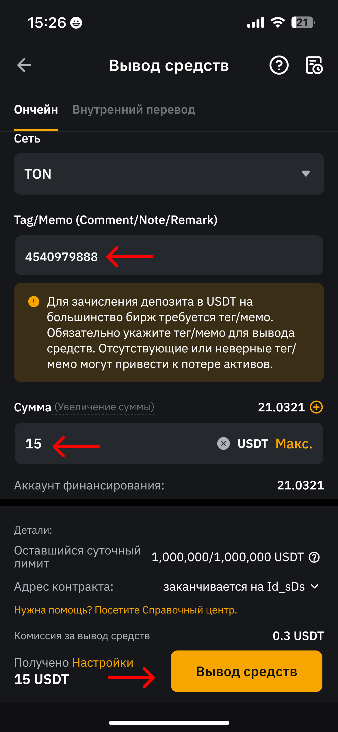 ‼️ <mark style="color:red;">**ВАЖНО:**</mark> MEMO — это уникальный идентификатор платежа, необходимый для корректного зачисления средств на ваш аккаунт. <mark style="color:red;">**Данное поле ОБЯЗАТЕЛЬНО для заполнения, так как без указания MEMO, средства не будут зачислены на ваш баланс.**</mark>\