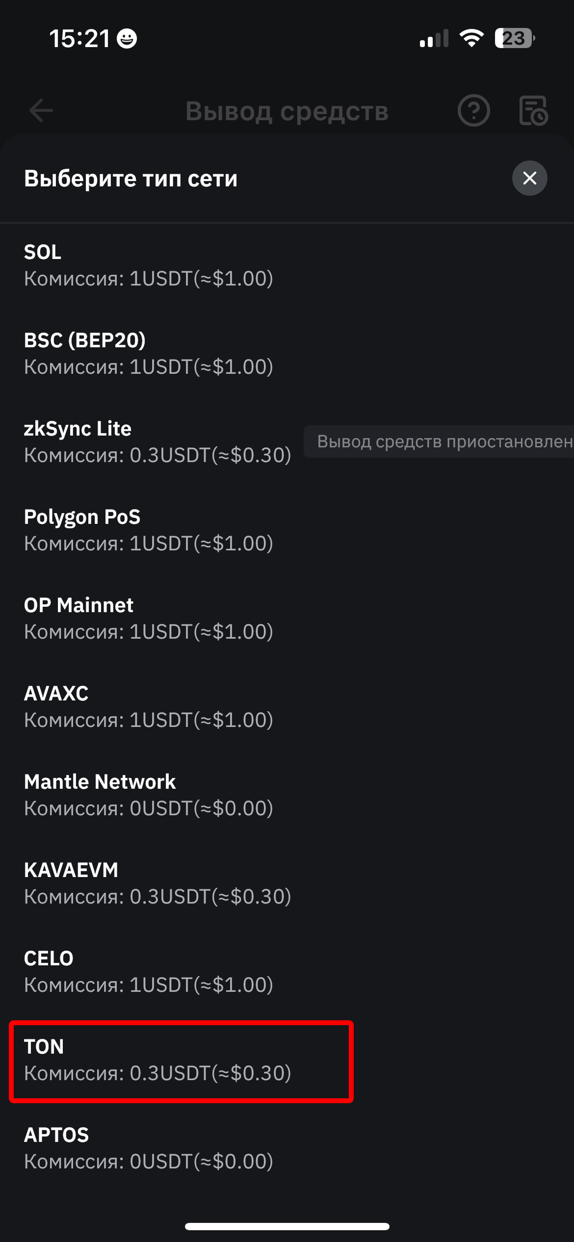 5. В разделе *"Сеть",* выберите **"TON"**.