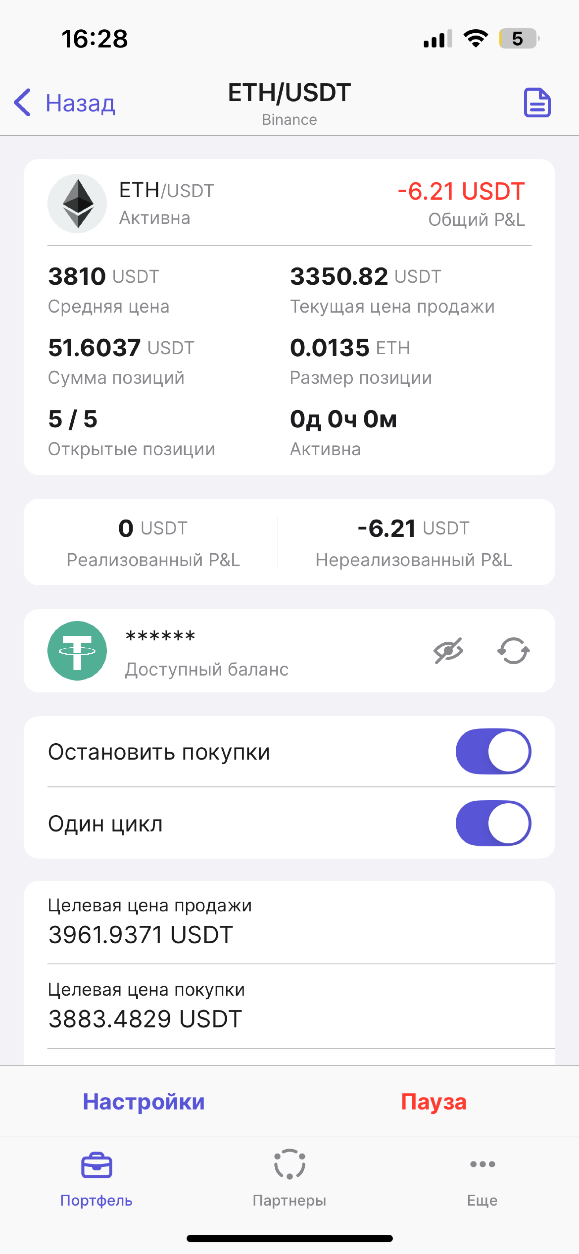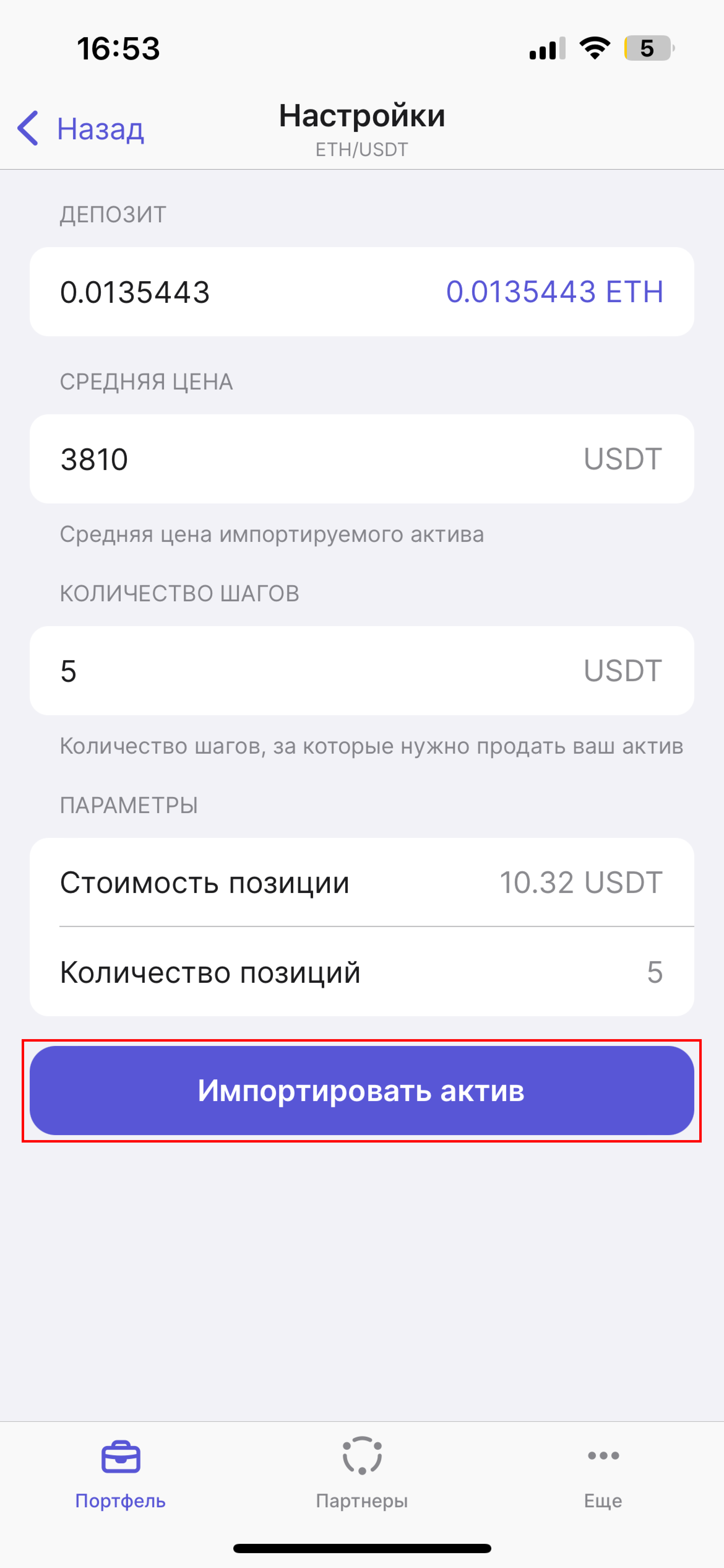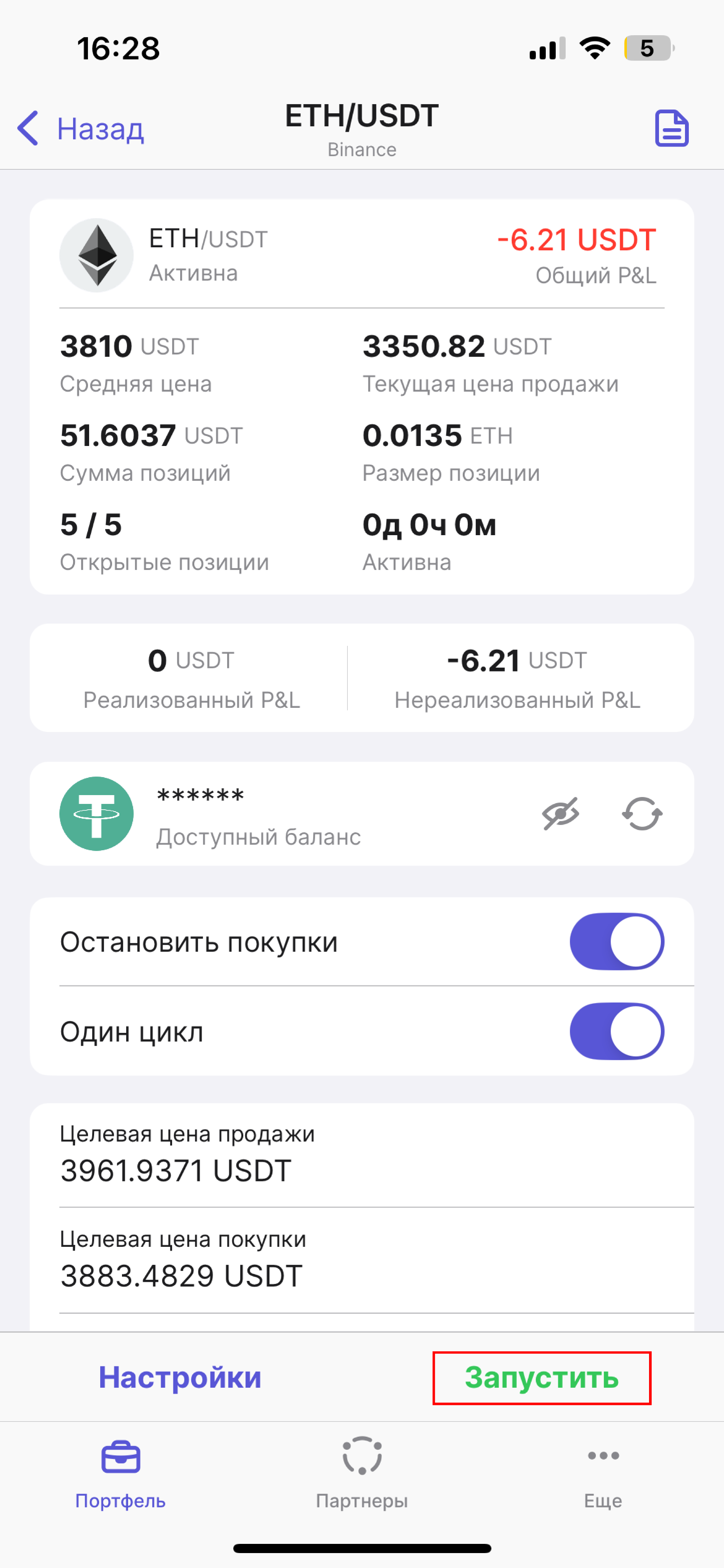 *Параметры стратегии* подтянутся автоматически, исходя из указанных вами настроек. Обратите, пожалуйста, внимание, что стоимость позиции не может быть меньше чем 10 USDT.