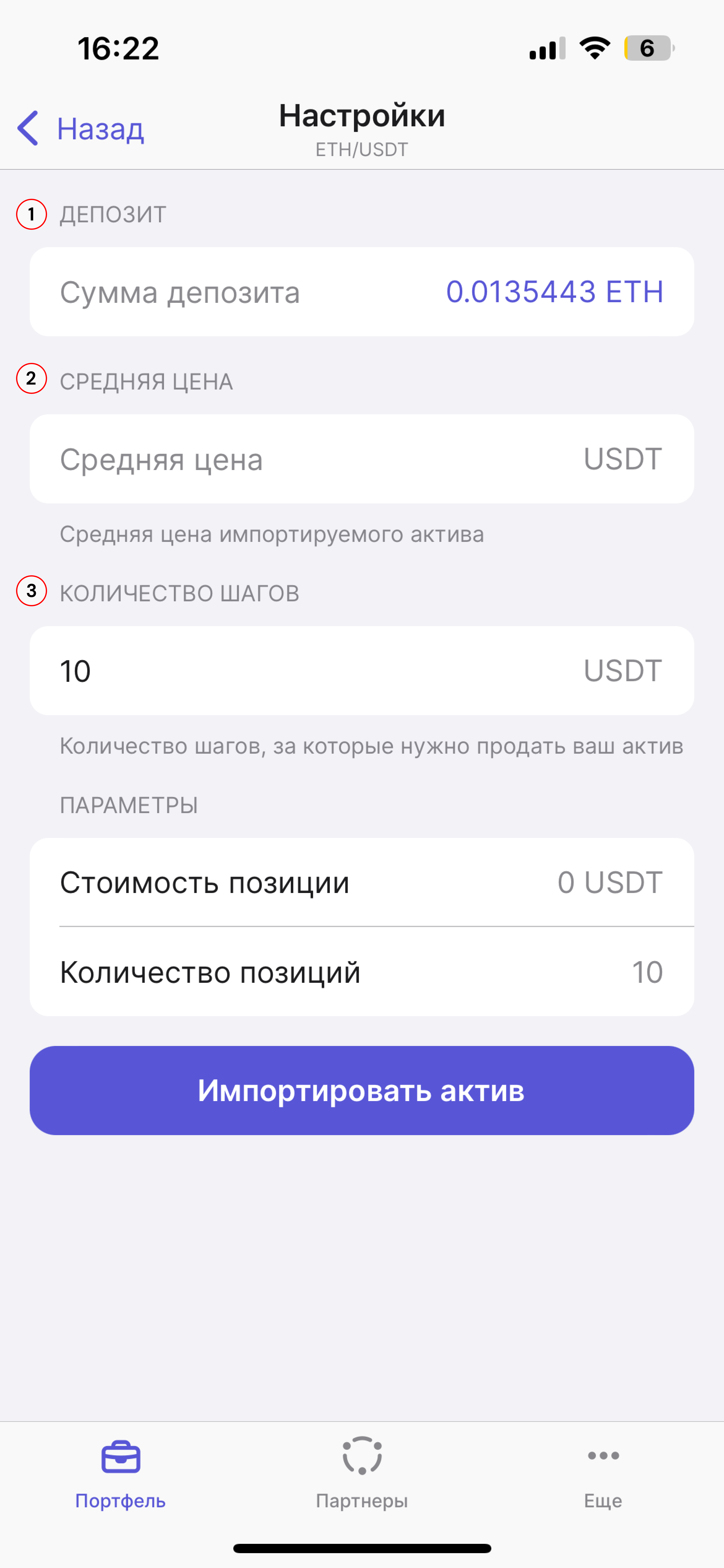 **Количество шагов** - укажите количество шагов, за которое вы хотите продать актив.&#x20;