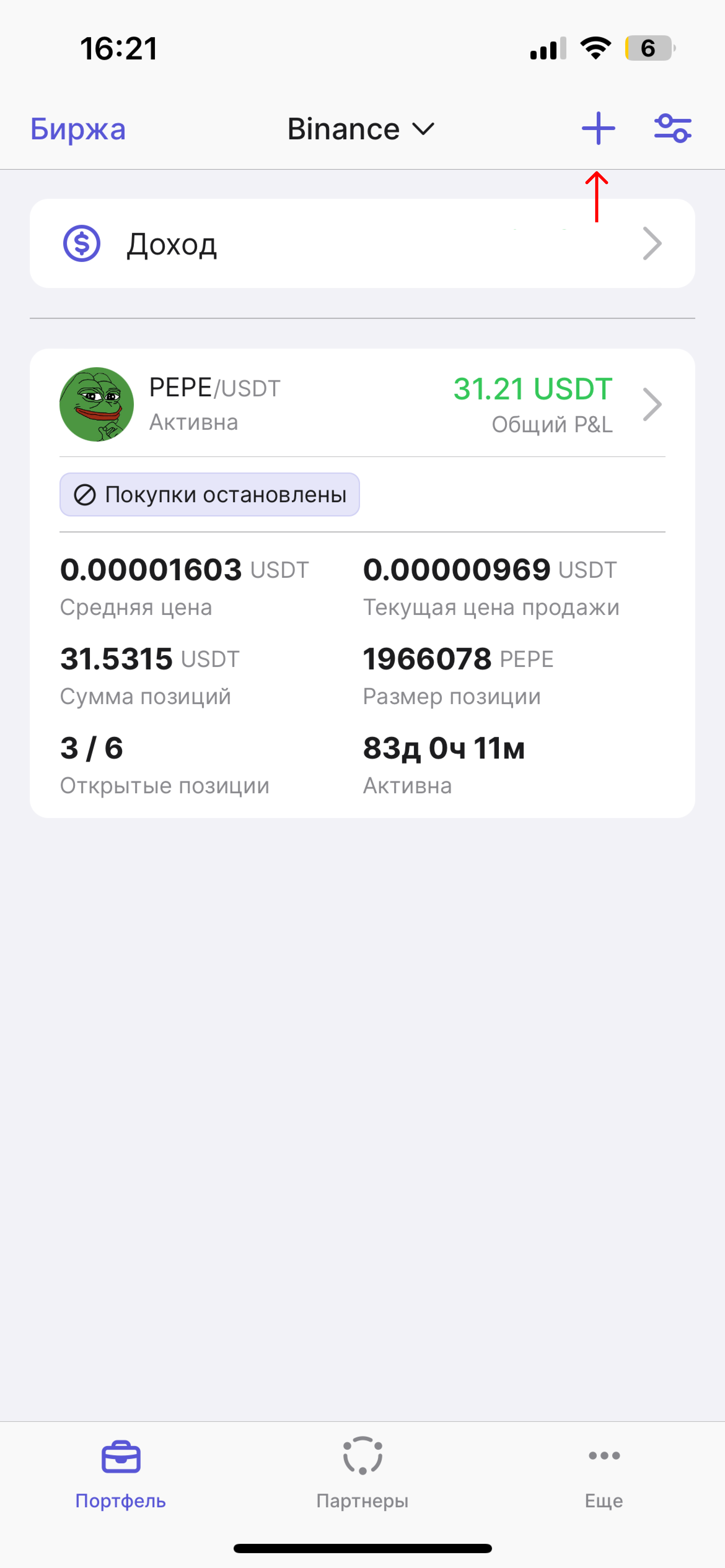 1. Откройте приложение Hash7 и на вкладке "Портфель" нажмите на плюс в правом верхнем углу.