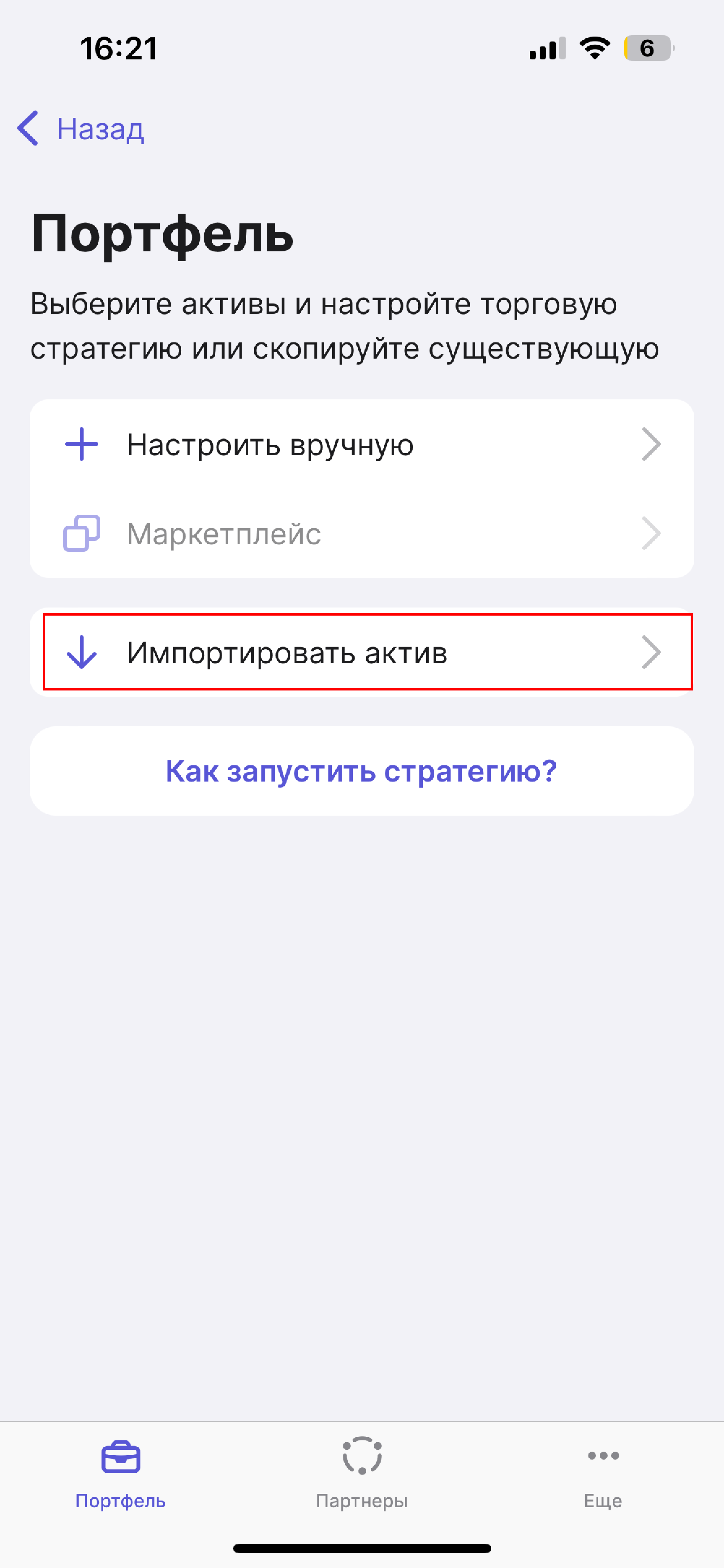 5. После настроек стратегии, нажмите на "Импортировать актив".
