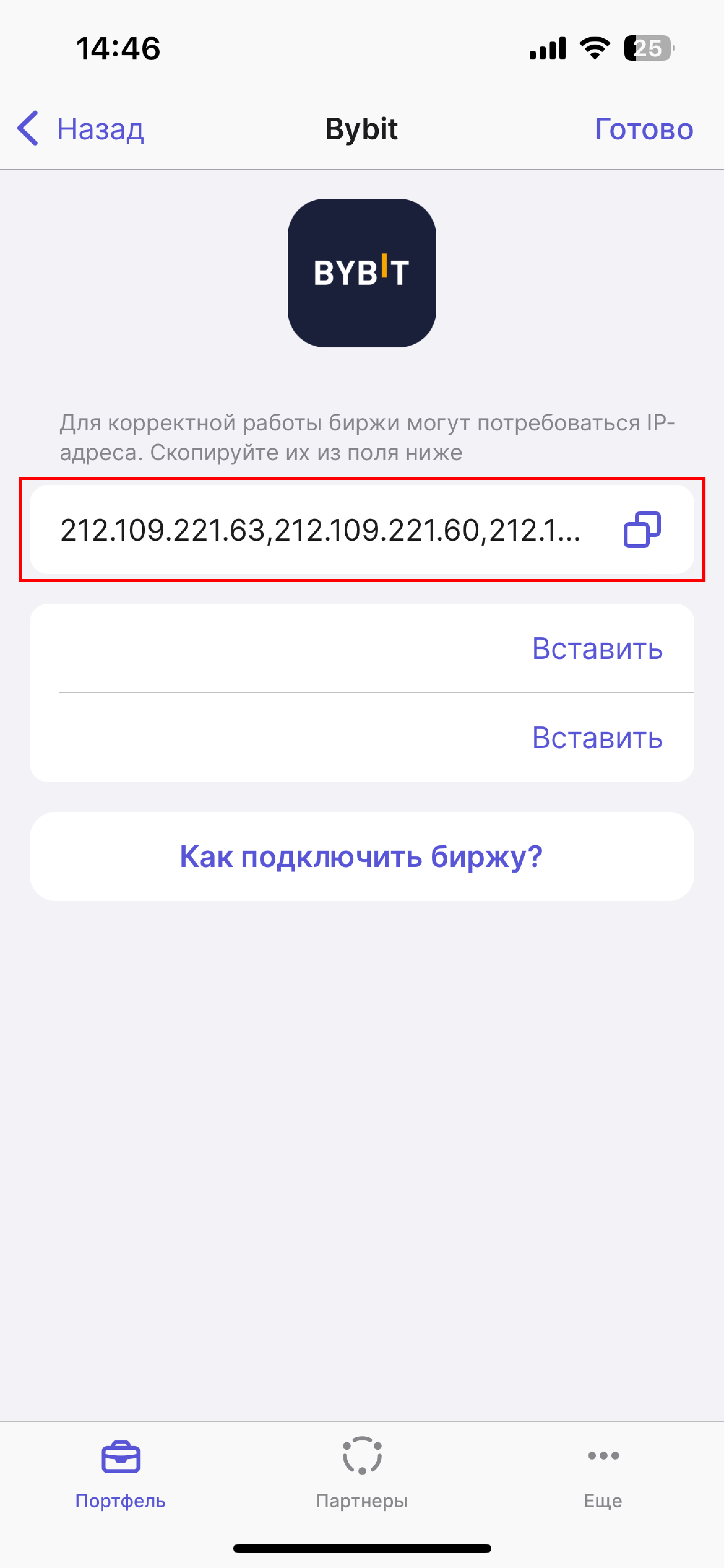 Вернитесь на сайт биржи и появившемся разделе вставьте IP-адреса, скопированные в приложении Hash7.